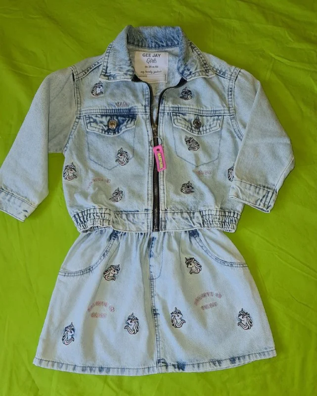 Джинсовый костюм с юбкой. Рост: 104 см (3-4 года). Цена: 20 евро.