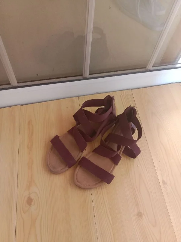 Сандали, 38,5 размер. Задник и передняя часть кожа, остальное резиночка, сидят хорошо, удобные. Приобретала в Германии, носила пару раз.