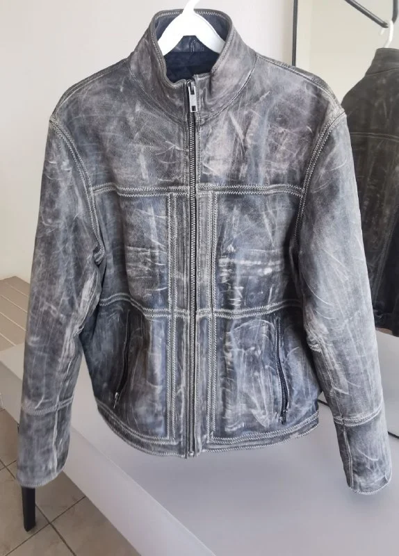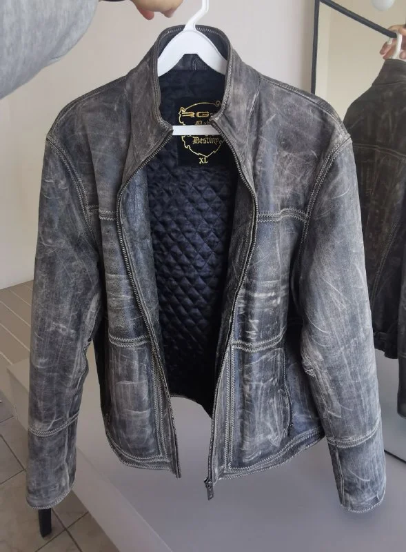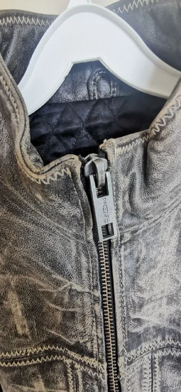 Кожаная куртка в стиле мото, с заводскими потертостями. Размер по факту M-L. Очень хорошо сидит на теле, винтажный стиль, такой же не найдете, и она выделит вас среди людей.