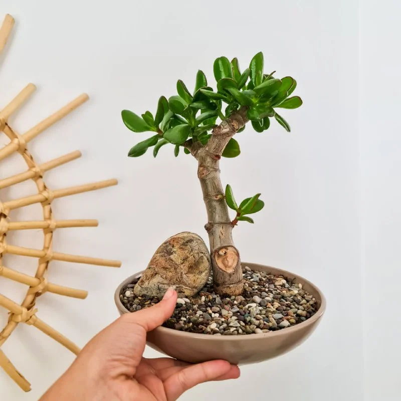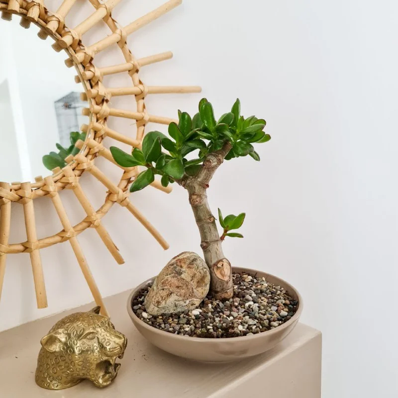 Бонсаи из толстянки (денежное дерево). В отличии от бонсаи из других видов растений, отлично выдерживает жару и сухость. Прощает ошибки в уходе. Идеально для новичков и кипрских погодных условий. Возраст около 2 лет, высота 30 см. Пафос, 20 евро.