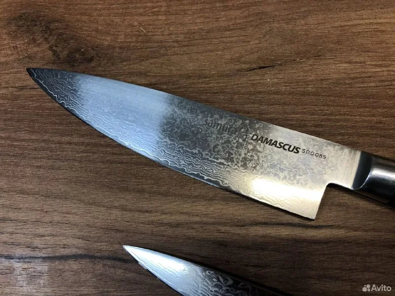 Продаю шикарную поварскую тройку Samura Damascus. Шеф, универсальный и овощной нож. Сердцевина VG-10 в обкладках из дамаска. Профессионально заточу в бритву.