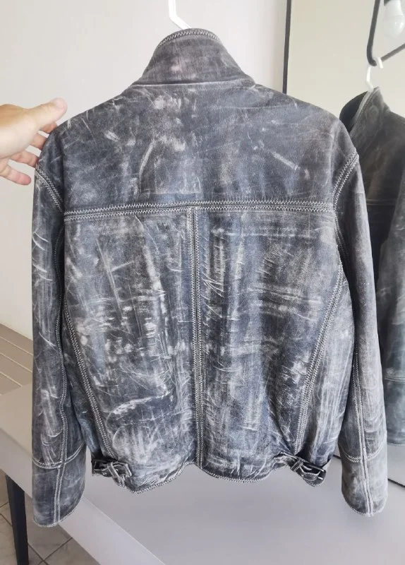 Кожаная куртка в стиле мото, с заводскими потертостями. Размер по факту M-L. Очень хорошо сидит на теле, винтажный стиль, такой же не найдете, и она выделит вас среди людей.