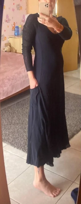 Платье с вязаными рукавами и вязаными вставками ,с карманом,интересный фасон.