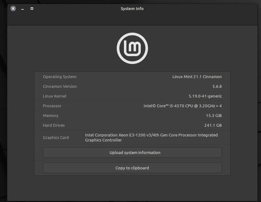 Системник он же компьютер: CPU i5-4570, память 16Gb, SSD 250Gb. OS Mint.
