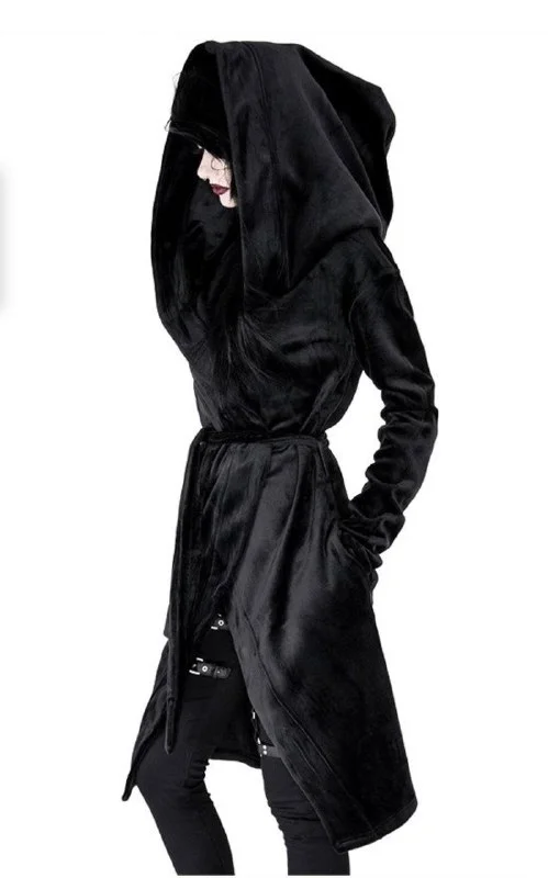 2. Длинная черная толстовка сделана из очень плотного трикотажного хлопка с бархатной отделкой.