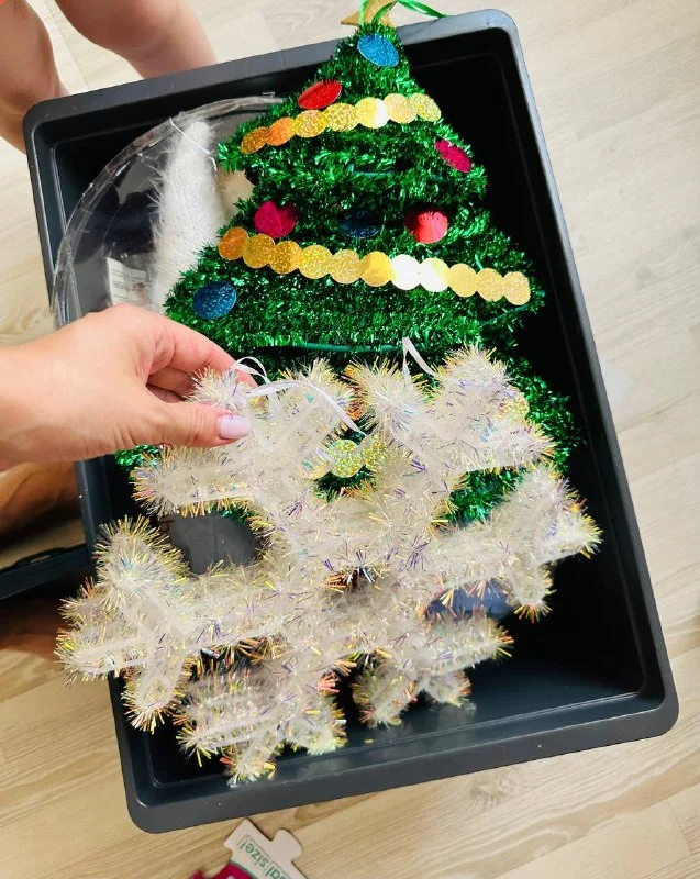 Набор елочных игрушек и елка.