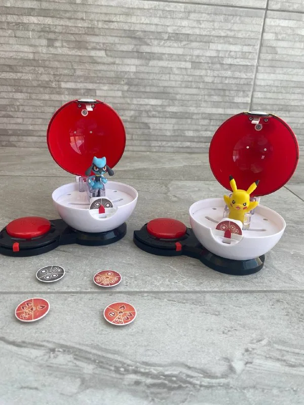 Pokémon Surprise Attack Game два покеболла с фигурками , раскручиваются при нажатии на кнопки и открываются, при этом выпадает на фишке значок. Фигурки можно менять на другие. 15 €. Лимассол
