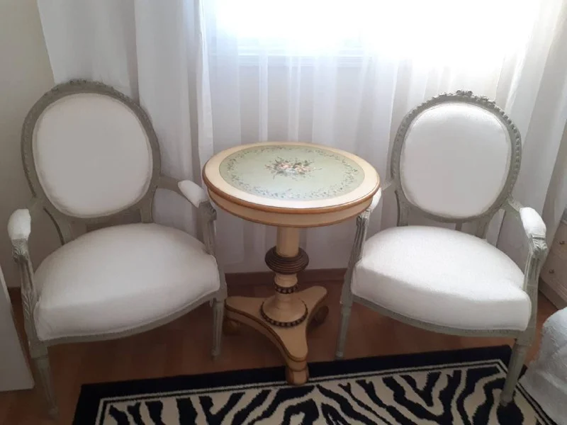 Антикварные стол и 2 стула , имеется сертификат, цена 880€ за 3 предмета лимассол