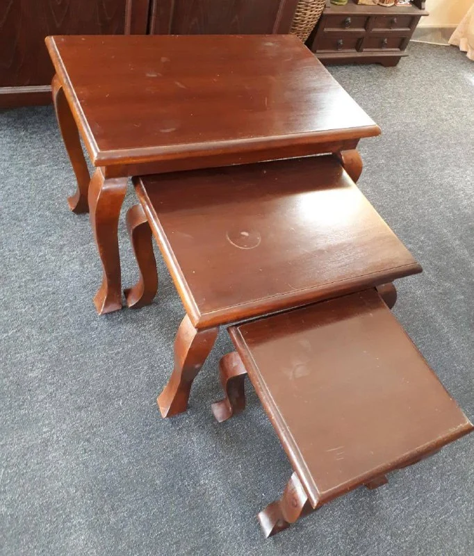 Продается комод с зеркалом, 2 прикроватные тумбочки, кровать под матрас 160*200, цена 240 евро за весь сет. Самовывоз из Писсури.