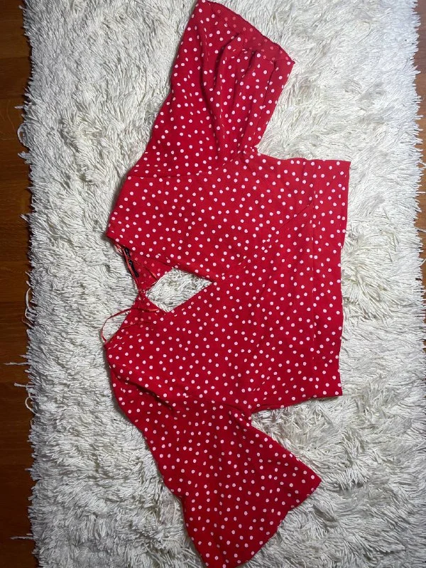 Красный топ в горох,S-4€
