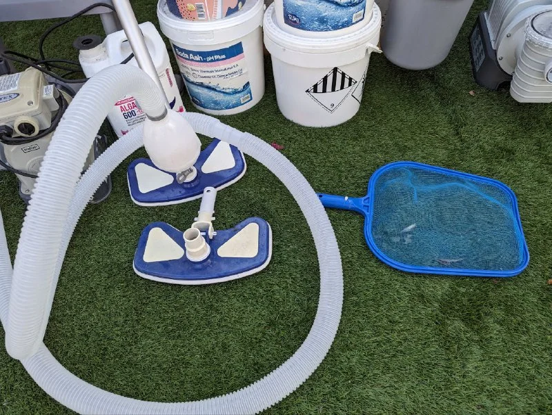 Очень много разной химии , пылесосы, электронный , измеритель PH, трубы, переходники и много много всего.