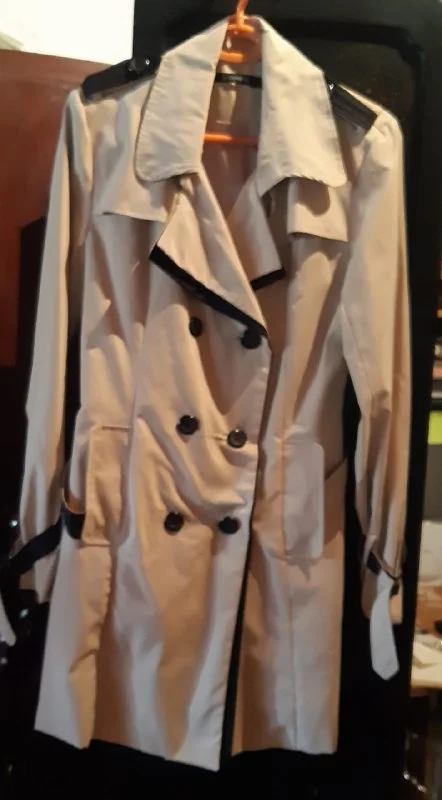 Тренч женский. Очень приятного цвета светлый беж, с черными акцентами. На подкладке. Состояние нового. Одевался один раз. Размер S-М. В сантиметрах — объём груди — 84-85, объём талии — 78, ширина плеча — 38, длина рукава — 59, длина изделия — 85. (Все размеры