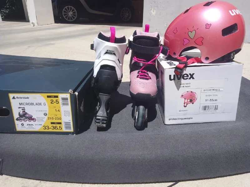 Ролики, защита шлем для девочки. Размер: 33-36.5. Мало пользовались. Покупали в Германии. Лимасол