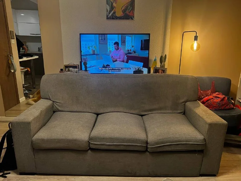 Трехместный диван-кровать в удовлетворительном состоянии, механизм раскладывания работает исправно, требует химчистки. Отдаем бесплатно. Самовывоз.Срочно. Лимассол, неаполис.