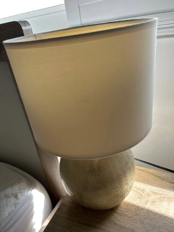 Лампа с золотистым основанием, абажур тканевый