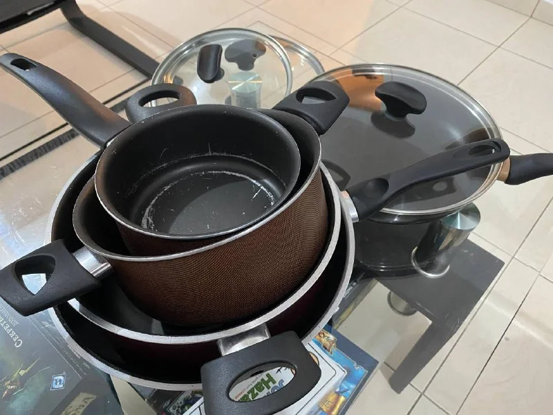 Продаю набор кастрюль и сковородок с тремя крышками для любого вида плит.