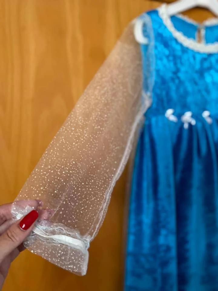 Бархатное удлиненное платье Эльза 6/8 лет , длина от плеча 100 см -комплект 20€ (платье,перчатки,коса)