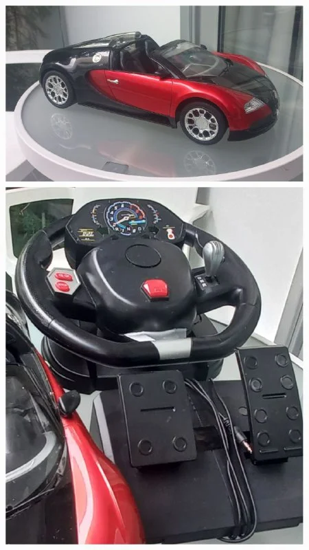Продам машину Bugatti на управлении (45 см длина) с рулём (передняя, задняя скорости, нейтралка), включаются повороты, заводится, сигналит, педали газа и тормоза- 35 евро. Айя-Напа