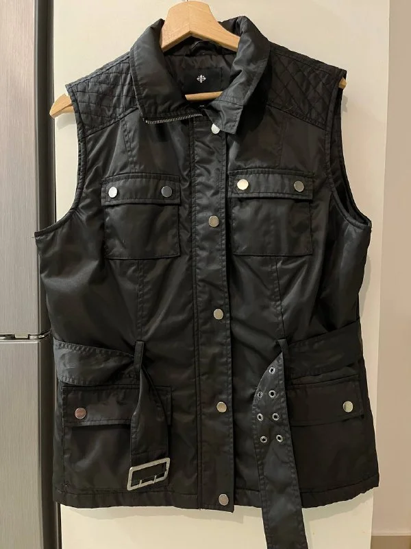 Жилетка черная, красиво дополнит образ в текущую погоду