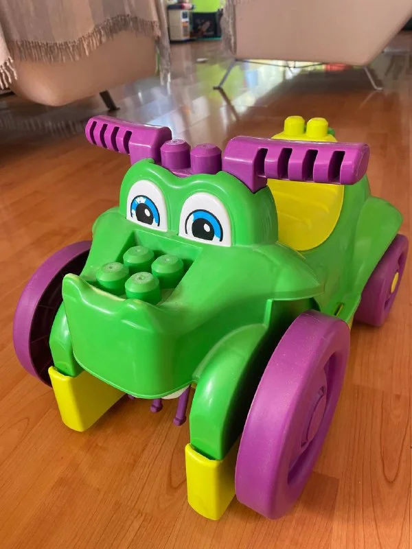 Крокодил Megablocks с набором кубиков. Можно ездить и собирать игрушки по полу😅.