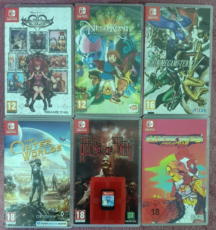 Kingdom Hearts €30, Nino Kuni €35, ShinMegami €45, Outer Worlds €40, House of the Dead €40, Hotline Miami €30, Trials of Mana €15