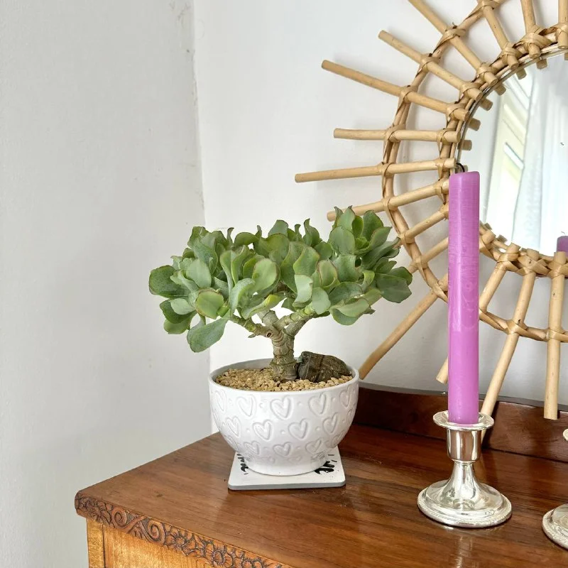 БРОНЬ Бонсаи из толстянки (денежное дерево) в керамической плошке. Интересный вид с кучерявыми листьями и стволом похожим на бамбук. Плошка 14 см, высота дерева 23 см, возраст 3 года. Пафос, 15 евро, в субботу могу привезти в Лимассол.