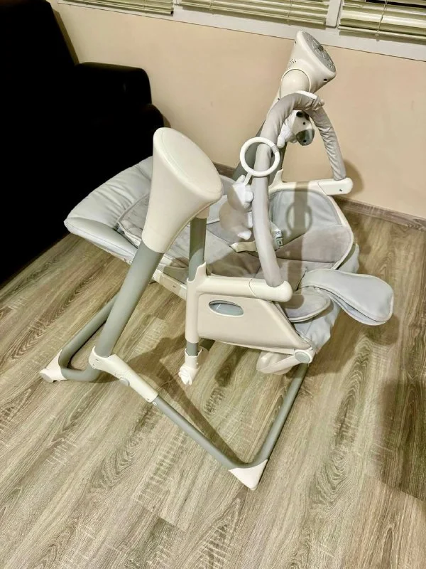 Высота регулируется, спинка регулируется, мелодии играются, само качает ребёнка (как от провода, так и от батареек)😎