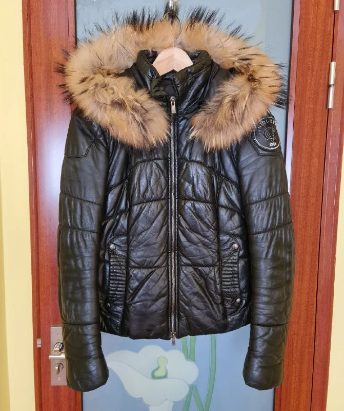 Кожаная теплая куртка (зима) Ventcouvert (оригинал, Франция). Отстегивающийся капюшон с натуральным мехом (мех не снимается). Размер: 36. Цена: 90 евро. Лимассол туристерия