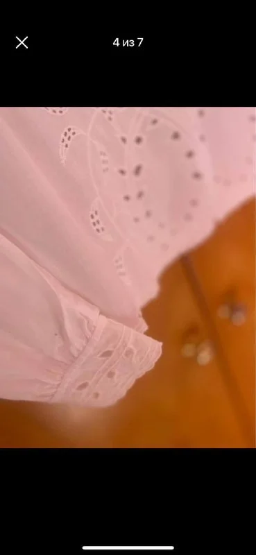 5. Платье House, XS, 5 €, цвет белый в горошек ( на фото желтит от цвета стен), отличное состояние, оверсайз, подойдет , мне кажется, вплоть до L. Длина - 84см, плечи - 55см, талия - 47см