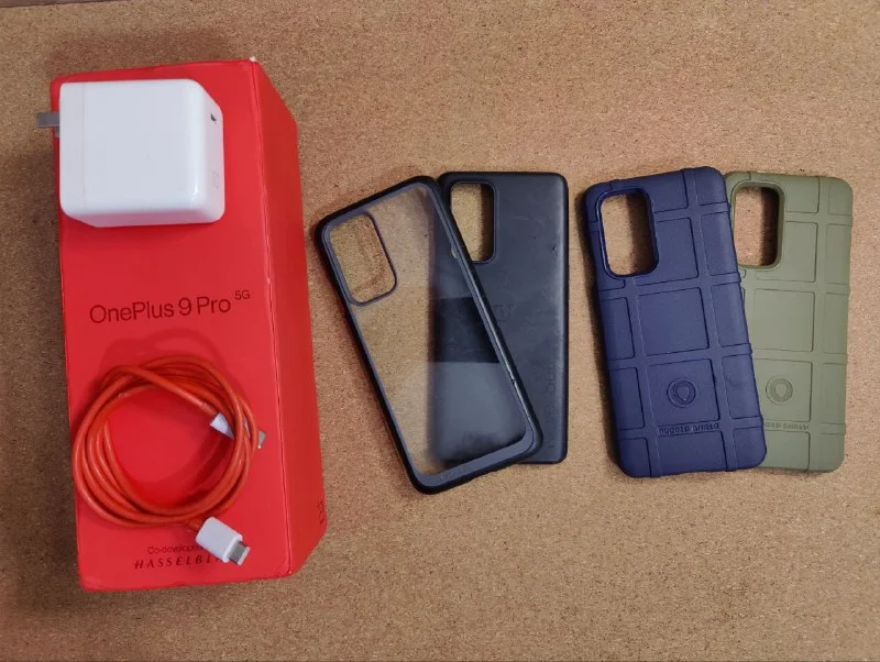 В комплекте коробка, оригинальная зарядка на 65W, 4 чехла (2 использованных и 2 новых) + две запасные защитные пленки