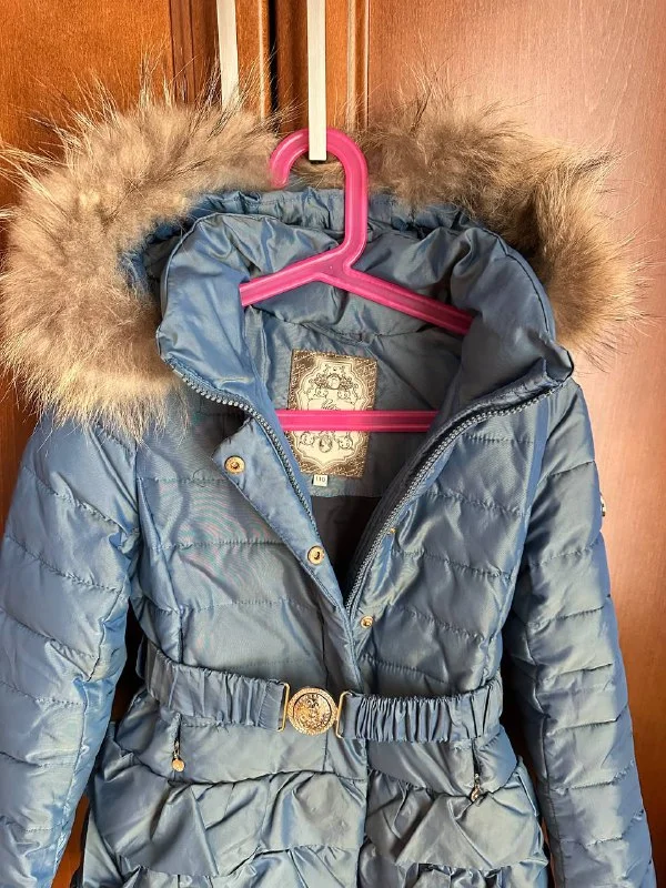 Теплый пуховик на рост 110-120 см. Натуральный мех на капюшоне отстегивается, есть пояс. Состояние отличное. Цена 20 евро. Лимассол.
