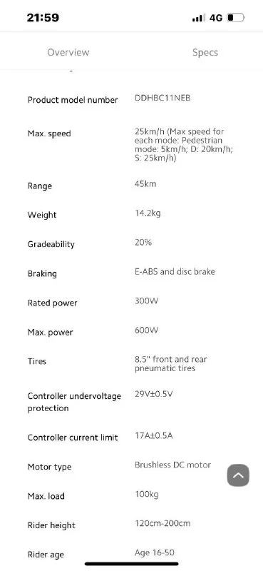 Максимальная скорость 25км/ч