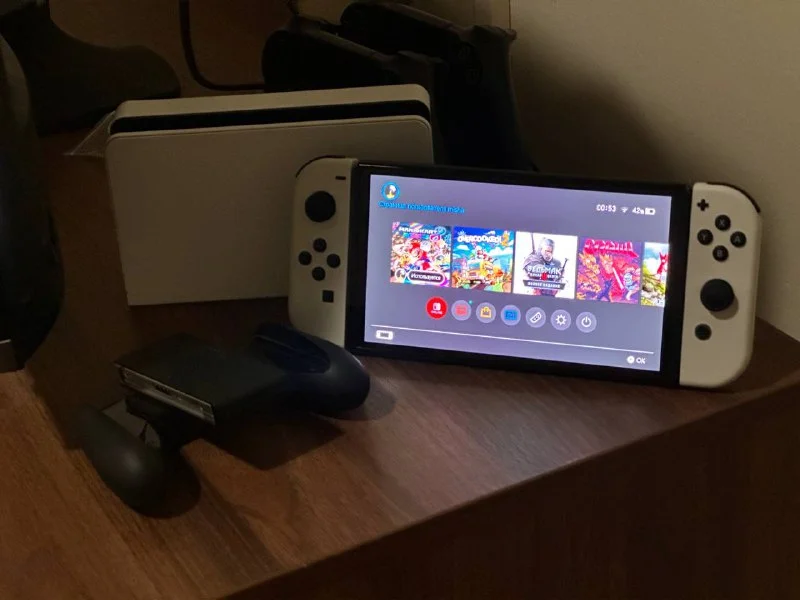 Продам Nintendo Switch OLED с хорошей коллекцией игр и чехлом. Вместе с консолью отдаю свой аккаунт с играми. Идеальное состояние, куплен пару месяцев назад. Коробка в наличии, всё упаковано как у нового. Чек и гарантия на месте. Хорошая портативная консоль для путешествий, детей/семьи/компании. С консоли снимаются джойстики и можно играть вдвоём/вчетвером. Так же она подключается к телевизору.