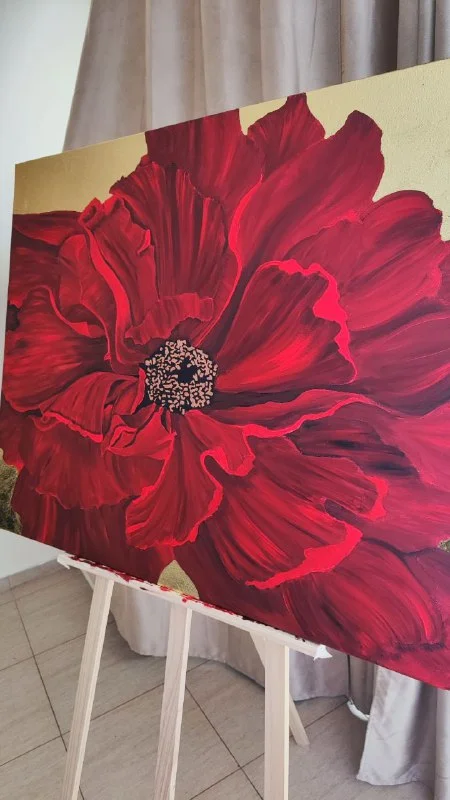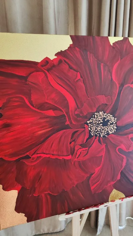 Картина ручной работы "Красный Пион"