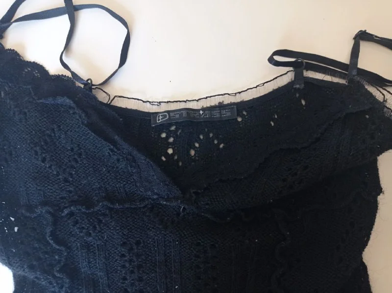 Глубокий вырез, я регулировала булавкой (ткань от этого не страдает).