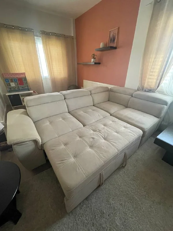 Отличный угловой диван, раскладывается + большой вместительный пуф.