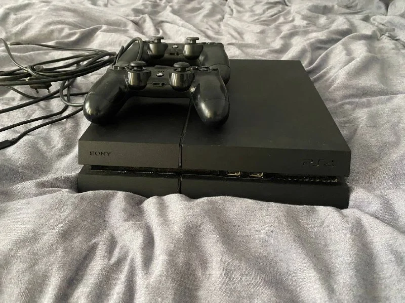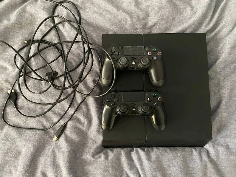 PS4 с двумя контролерами (один абсолютно новый) и всеми кабелями для питания зарядки и HDMI 200€
