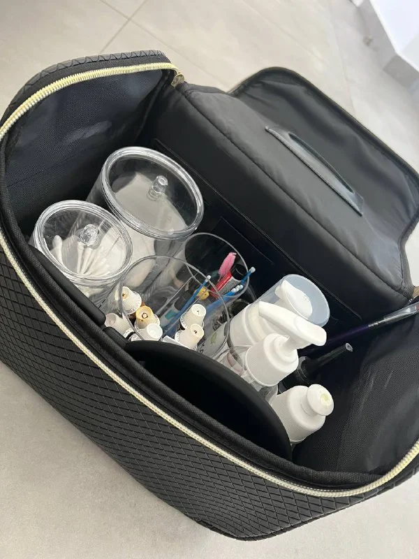 Сумка для Beauty принадлежностей с пластиковыми баночками внутри.