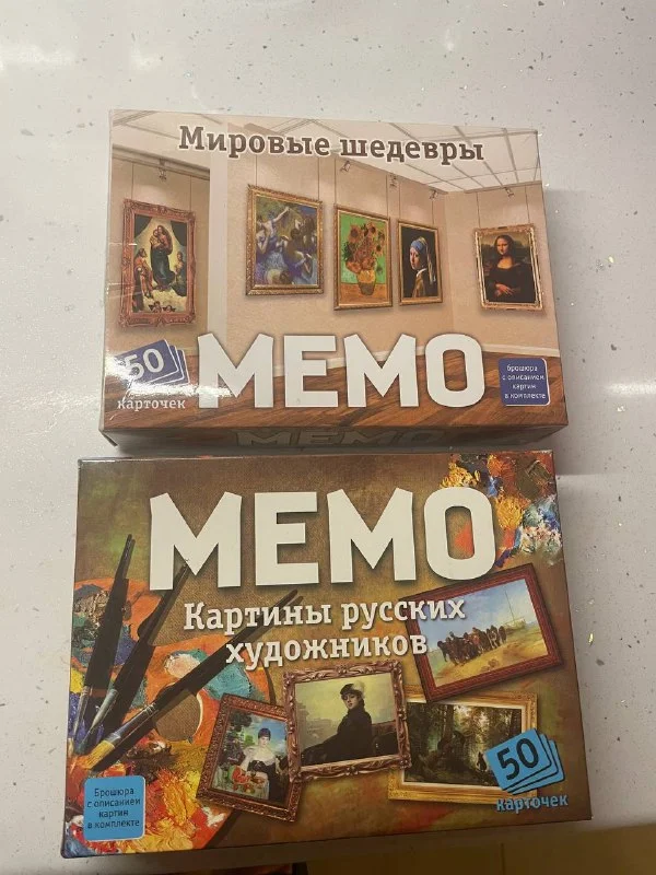 2 игры по типу мэмори с описанием картин и художников.