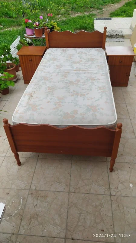 Продается кровать 100×200 односпальная с матрасом, в хорошем состоянии, за 30€, тумбочки прикроватные по 15€. Если все вместе - за 50€. Пафос, Анаваргос. В личку пишите или тел. 94427170 Михаил.