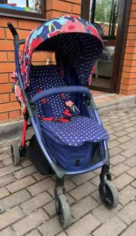 Cosatto Fly, с большим капором. Нижний ремень был оторван, пришит. Можно заменить другими ремнями. Выцвел основной матрас. Состояние б/у. 30€. Лимассол