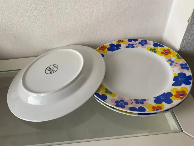 1 ком (4шт) б. глубокие, 2 комплекта больших тарелок плоских (8 шт), 1 комплект гл маленькие (4шт), 1 комплект овальных сервированных (2 шт), за все 70 евро ИКЕА