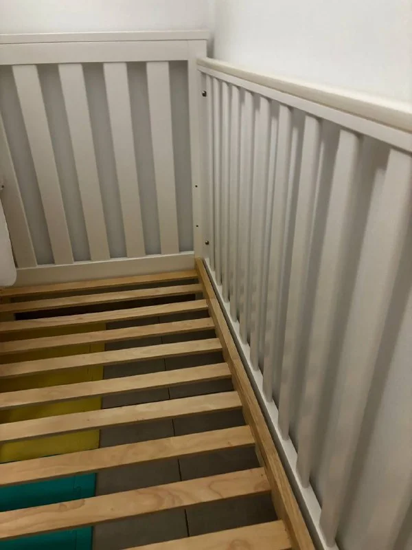 Детская кроватка с матрасом из Mothercare. Очень удобная кровать, можно использовать как приставную кроватку, убрав боковой бортик и приподняв матрас. Либо можно использовать как обычную кровать до 5-7 лет, убрав боковые бортики, так как в комплекте идет дополнительный низкий бортик. Матрас с отстегивающимся влагостойким наматрасником, все легко отстирывается. Размер 140 на 70. Цена - 140 евро, Никосия. Лакатамия.