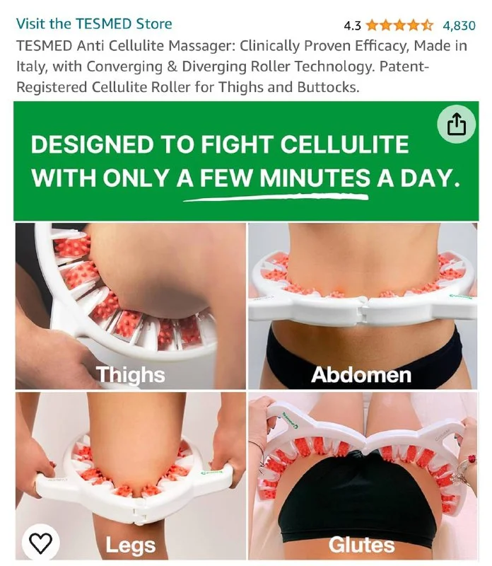 Новый Антицеллюлитный массажер TESMED: клинически доказанная эффективность, сделано в Италии, с технологией конвергерных и расхождных роликов. Зарегистрированный целлюлитовый ролик для бедер и ягодиц.