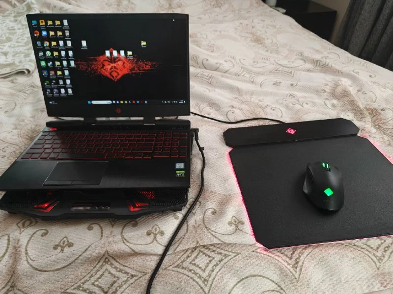 Продам игровой ноутбук вместе с мышкой, ковриком с встроенной беспроводной зарядкой и кулером.