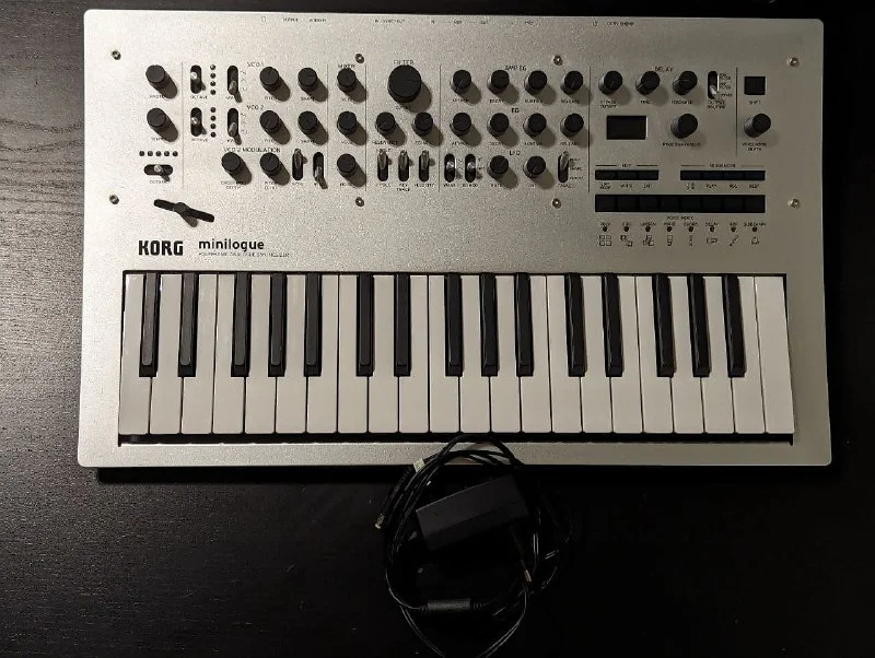 Все еще продаю синтезатор Korg Minilogue. В компекте сам синт, блок питания, кабель джек-джек, переходник джек-мини джек для нукшников и миди кабель.