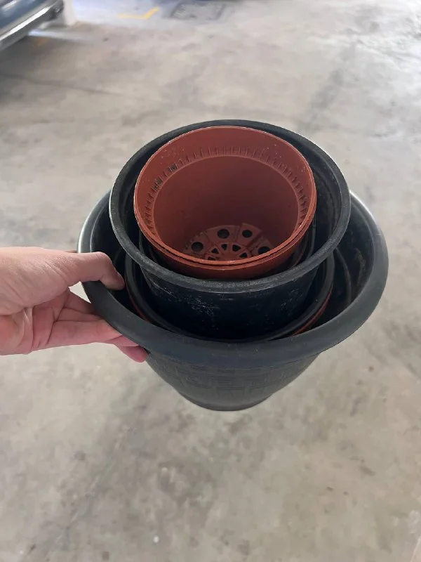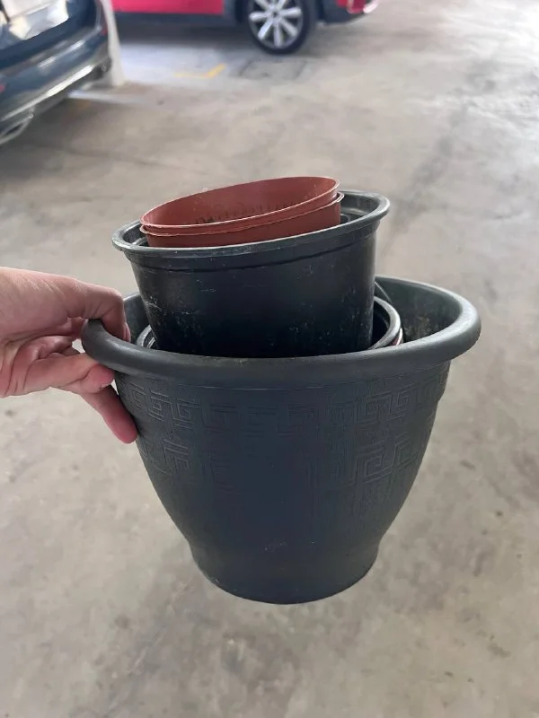 Горшки транспортировочные для цветов, около 6 штук, разных размеров, но в основном небольшие - 5 евро или обменяю на нового растение. Горшки большие 2 шт, брали под деревья. За два горшка 10 евро.