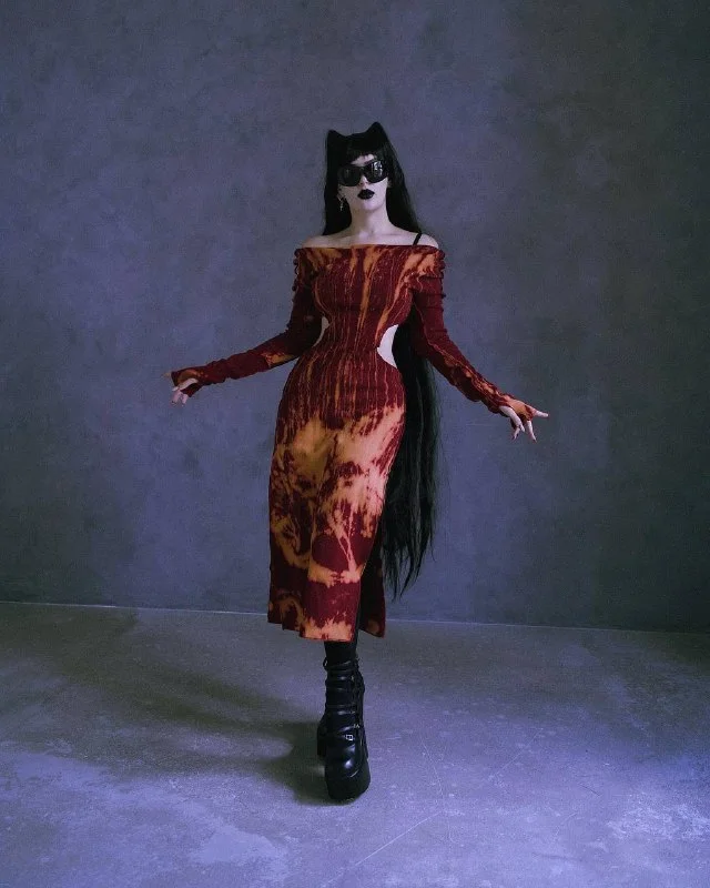Нарядное красное платье с оборками.