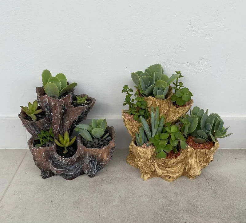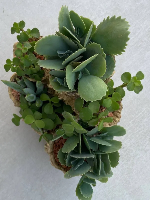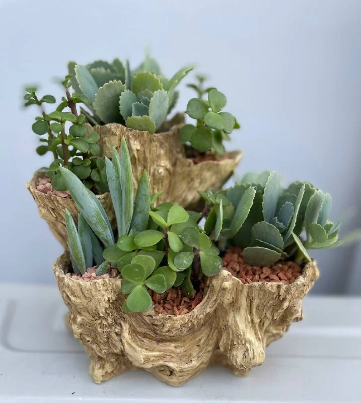 25€ Суккулентовый минисад/клумба: мраморное каланхоэ, портулакария африканска, ползучий крестовник (Curio repens). В пластиковом горшке-миниклумбе, имитация под дерево, высота горшка 17,5 см, ширина 19 см. // домашние растения //уличные растения // суккуленты в горшке📍Лимасол