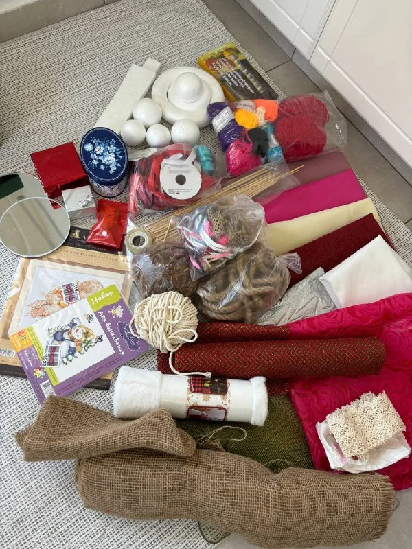 Большой набор для рукоделия. Нитки, ткани, множество лент, веревки, метр и др. За все 15 евро. Никосия.